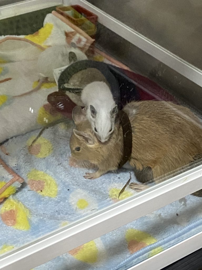 すくすく成長! 2021 1/12 広告 デグー日記 2020年12月22日2021年1月12日 ちびたちがすくすく成長してます! ハムスター用のトンネルで遊ぶちび。 100円ショップのお酒のケース!ミニチュアとサイズ感がぴった。! 母の上で遊ぶちびさん! あぁ、、9匹も育てられないけど、誰にも譲りたくなくなってきた、、、笑 Related posts: デグーの飼育で必要なもの ねぎとさぶろーくん デグ1グランプリ デグーの食べ物 デグー日記 デグー、ちび この記事が気に入ったら フォローしてね! Follow @ipcvm3HrNr5dNYU Follow Me よかったらシェアしてね! URLをコピーしました! URLをコピーしました! デグ1グランプリ 【2022年版】デグーのカラー 我が家の21匹のデグーでご紹介します。 この記事を書いた人 のるでぐ ノルウェージャンフォレストキャット2匹とデグー22匹と,奥様と仲良く暮らす一般サラリーマン。 関連記事 デグー初心者がまず読むべき1冊はこれ!信頼できる飼育本で安心のスタートを 2025年10月8日 🐾 足の裏が赤い?デグーの足底潰瘍かも?チェックポイントと対処法【予防のコツも紹介】 2025年9月23日 ペット不可物件でもデグーはOK?一人暮らしで小動物を飼うリアル体験談~🐾猫が飼いたかった私がデグーを選んだ理由~ 2025年8月4日 デグーの軟便、これって病気?すぐ病院に行くべきか迷ったら読むガイド 2025年7月31日 猫とデグーは一緒に暮らせる? 2025年6月29日 【設置レポ】楽天で買ったキャットウォーク。猫のために壁に穴、開けました。 2025年6月27日 デグーってどんな動物?初心者向け完全ガイド 2025年6月21日 猫ちゃんが大喜び!無添加の「かつお削り」で特別なひとときを🎣🐾 2024年11月18日 コメント コメントする コメントをキャンセルコメント ※ 名前 ※ メール ※ サイト 次回のコメントで使用するためブラウザーに自分の名前、メールアドレス、サイトを保存する。 Δ