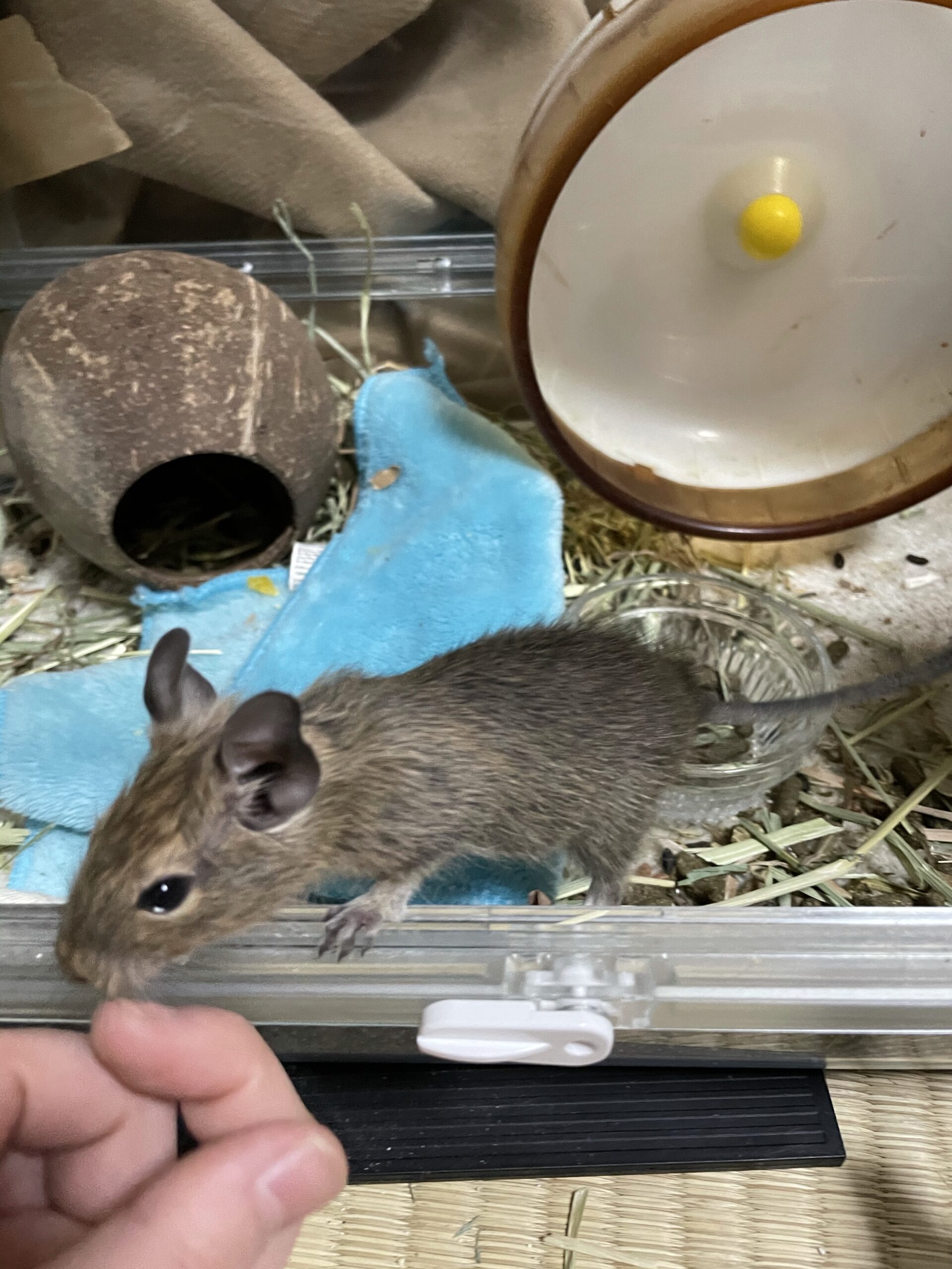いい日、旅立ち 2021 1/18 広告 デグー日記 2021年1月18日 遂にこの日がやってきます。あなご♀が明日、職場の方のお宅へ引越しすることとなりました。あなご!あばよ!! この子がいい!と選ばれました!喜ばしいことです! 寂しいですが、次の家族のことも幸せにしてきてください! ばいばいあなごー! 好奇心いっぱいのあなご♀ Related posts: No related posts. デグー日記 旅立ち この記事が気に入ったら フォローしてね! Follow @ipcvm3HrNr5dNYU Follow Me よかったらシェアしてね! URLをコピーしました! URLをコピーしました! デグーってなに?? GEX ハビんぐ グラスハーモニー600 この記事を書いた人 のるでぐ ノルウェージャンフォレストキャット2匹とデグー22匹と,奥様と仲良く暮らす一般サラリーマン。 関連記事 大型長毛猫の魅力を徹底比較:ラグドール vs ノルウェージャンフォレストキャット 2025年11月26日 デグー初心者がまず読むべき1冊はこれ!信頼できる飼育本で安心のスタートを 2025年10月8日 🐾 足の裏が赤い?デグーの足底潰瘍かも?チェックポイントと対処法【予防のコツも紹介】 2025年9月23日 ペット不可物件でもデグーはOK?一人暮らしで小動物を飼うリアル体験談~🐾猫が飼いたかった私がデグーを選んだ理由~ 2025年8月4日 デグーの軟便、これって病気?すぐ病院に行くべきか迷ったら読むガイド 2025年7月31日 猫とデグーは一緒に暮らせる? 2025年6月29日 【設置レポ】楽天で買ったキャットウォーク。猫のために壁に穴、開けました。 2025年6月27日 デグーってどんな動物?初心者向け完全ガイド 2025年6月21日 コメント コメントする コメントをキャンセルコメント ※ 名前 ※ メール ※ サイト 次回のコメントで使用するためブラウザーに自分の名前、メールアドレス、サイトを保存する。 Δ