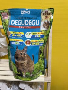 副食としてペレットという、デグーフードを与えております。パッケージに記載されているgを守って与えましょう。おやつとしてコミュニケーションを取るためにも活用できます。